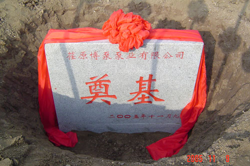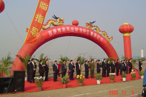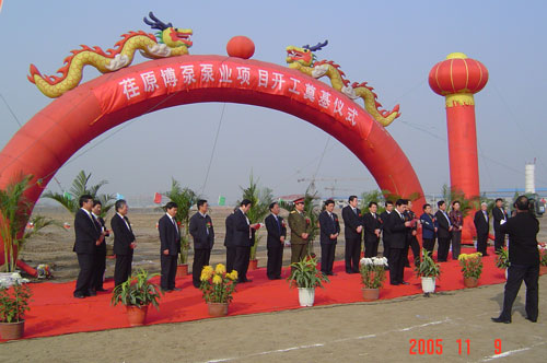 2005年11月9日,荏原博泵有限公司開工奠基儀式在淄博高新技術開發區隆重舉行。這標志著荏原博泵泵業有限公司的建設工作已經全面啟動,預示著荏原博泵泵業有限公司將穩健地邁上蓬勃發展的道路。