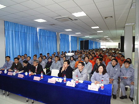 元月29日,公司一年一度員工大會在公司餐廳隆重召開,全體員工參加大會,公司董事長井上貴雄先生參加大會并講話。