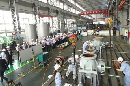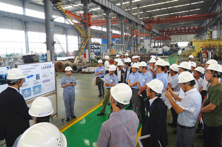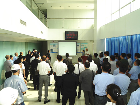 這次生產(chǎn)革新大會(huì)的目的是加速推進(jìn)荏原集團(tuán)內(nèi)部各工廠的生產(chǎn)革新活動(dòng)的開(kāi)展,目標(biāo)是生產(chǎn)周期減半、庫(kù)存減半、最大限度地提高生產(chǎn)效率,降低成本,增強(qiáng)企業(yè)競(jìng)爭(zhēng)力。通過(guò)生產(chǎn)革新活動(dòng),達(dá)到從現(xiàn)場(chǎng)改善提升到管理系統(tǒng)改善、人的改善的目標(biāo),使“產(chǎn)品制作”流程優(yōu)化。在這次大會(huì)上,公司總經(jīng)理王正軍向與會(huì)代表介紹了EMZ的經(jīng)營(yíng)發(fā)展?fàn)顩r,并帶領(lǐng)與會(huì)人員參觀工廠,詳細(xì)介紹了生產(chǎn)革新的進(jìn)展情況。